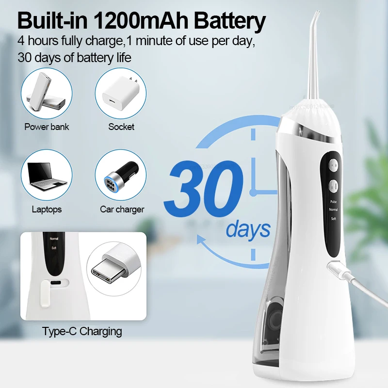 Mini Electric Oral Irrigator Kids Water Flosser Cordless Teeth Cleaning Gums Braces Care Rechargeable with 4 Tips 2 Modes